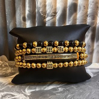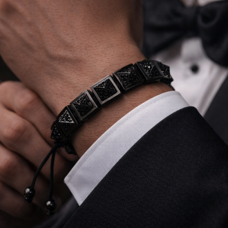 - 1 x Silver Stainless Steel Cuff Bracelet Lined with Black Zirconia Beads